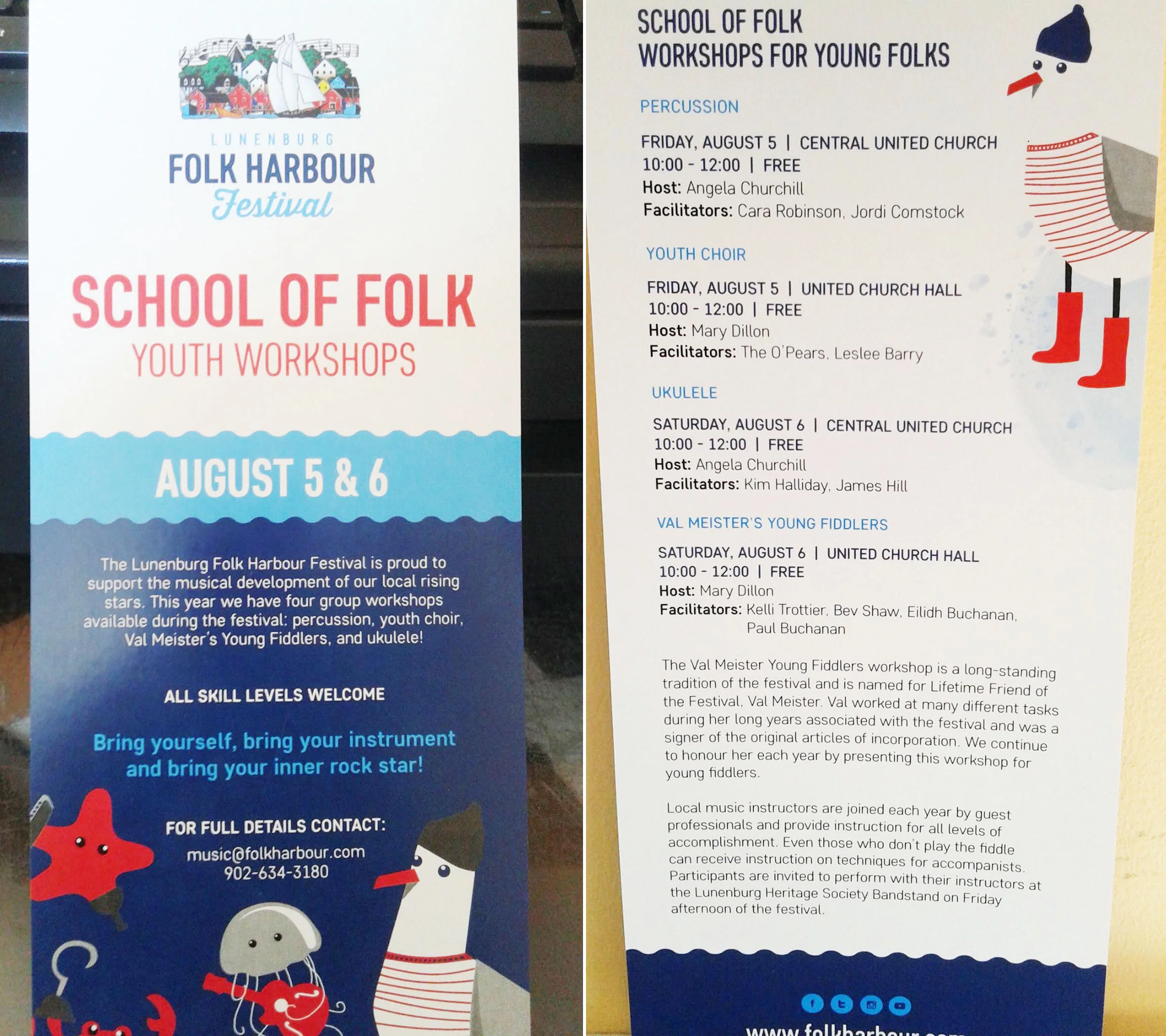 Please check out these great youth music workshops, happening this Friday and Saturday in Lunenburg! There are workshops for percussion, youth choir, ukulele and fiddle. All skill levels are welcome, so just bring an instrument! Paul, Bev and I are looking forward to teaching at the fiddle workshop - along with fabulous fiddler, singer and step-dancer, Kelli Trottier! These workshops are free of charge, and are part of the Lunenburg Folk Harbour Festival. A fantastic opportunity!